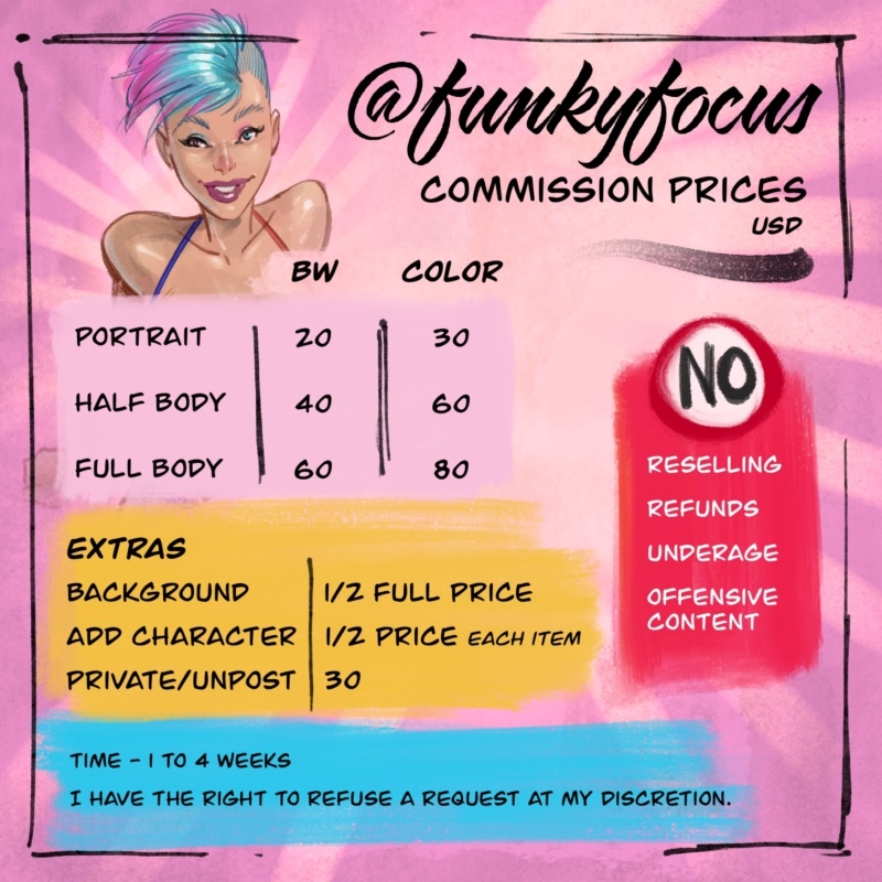 While selecting the commission option your choice, communicate by email or DM on Twitter the details of the artwork for approval.
